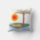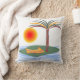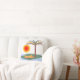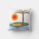Bright Tropical Palm Tree, Sun and Waves Throw Pillow