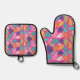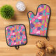 Bright Tropical Summer Leaves Pattern Oven Mitt & Pot Holder Set