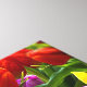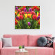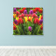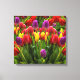 This beautiful work of art features a high-definition image of tulips in various bright shades of red, purple and yellow.