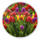 This beautiful design features a high-definition image of tulips in various bright shades of red, purple and yellow.