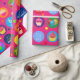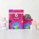 Celebrate your loved ones birthday or special occasion with this bright, colourful and eye catching design. Depicting balloons, stars and cupcakes set upon vibrantly coloured discs and set against a dazzling pink background. Text is in white and can be customized to the age, name and occasion of your choice.