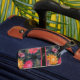 Bagage vintage lumineux à fleurs rose, orange et violet sur un arrière - plan gris foncé. Le détail de trait fournit le contraste, Ajoutez votre propre texte, nom ou initiales personnalisés.
