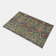 This design features a fabric pattern created by British artist William Morris (1834–1896), who was a founder of the Arts and Crafts movement. It shows green foliage on a blue background with red and pink touches of colour. There are visible sunflower, violet and columbine flowers. The original pattern was first designed in 1883.