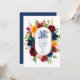 Bright, watercolor, multicolor, floral oval border with a white background and save the date templates in dark blue.