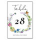 Bright Wildflower Wedding Table Number with pretty florals and butterflies.