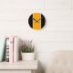 Bright Yellow Orange Black White Vertical Stripes Round Clock