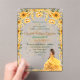 Printed on high-quality acrylic, this invitation offers a modern and durable keepsake for your guests to treasure. The delicate yellow flowers surrounding the quinceañera enhance the lively and enchanting design, while the acrylic material adds a sleek and elegant touch to this one-of-a-kind invite.