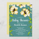 Cute bright watercolor yellow watercolor flowers and green leaves themed baby shower invitations! They feature a bold dark teal green background with white text. The backside of the invitation is a lovely yellow.