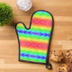 Brightly coloured oven mitt with a rainbow