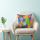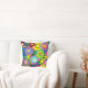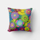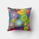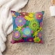 Brightly coloured, yellow, blue, pink, green floral pillow