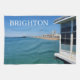 A beautiful view of Brighton beach from the Pier on a sunny day printed on a souvenir tea towel.