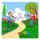 Dessin de deux hommes parlant sur une boîte de conserve téléphone.