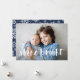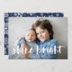 Festive Hanoukka carte photo présente votre photo horizontale ou paysagère préférée en fond saigné, avec "brillant brillant" superposé dans la typographie de brosse en lettres blanches. Personnalisez l'avant de la carte avec vos noms et un court message de vacances, et ajoutez trois photos supplémentaires à l'arrière dans une mise en page collage sur un arrière - plan à motif de flocon bleu marine, ainsi qu'un message personnel personnalisé. Pour un dossier vide, il suffit de supprimer le calque mat modèle photo et blanc.