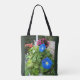 Bring the brilliance of full summer to any errand with this celebration of floral color. The bluest of morning glories and a profusion of leaves and vines contrast with luscious melon-hued impatiens and petunias on this vivid shoulder-tote. Use it to carry anything from groceries or garden supplies to a quick change of clothes for the gym or your latest treasures from the local nursery or flower shop…or give it as a stunning gift.