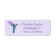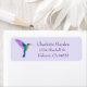 Jolie étiquette d'adresse de retour avec un colibri brillant à la poitrine blanche sur un arrière - plan violet clair. Personnalisez-le en ajoutant votre nom et votre adresse. La police, la taille et la couleur de police peuvent être modifiées en cliquant sur "customiser plus loin".