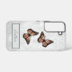 Charge your electronic device with a Brilliant Copper Butterflies Samsung Galaxy Case. Case design features brilliant butterflies resting on a white floral vine against a grey grunge background.