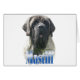 Mastiff. Show off your favourite breed of dog with this design. Simple, yet elegant, our design features a brindle Mastiff picture labelled with the breed name in a blue metal.