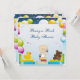 Fun and colourful Bring a Book Baby Shower invites for boys with a cute happy baby boy with blue cupcakes sitting on a pile of books. On either side of him is a pile of books with a cute pretty teddy bear on one and rubber duck on the other. There is a beautiful colourful balloons background. These bright and cheerful invitations are decorated on both sides. All of the text is fully customizable to meet your needs and you can change the font style, colour and size of font if you desire. If you need any assistance customizing your product please contact me through my store and I will be happy to help. Baby from resaleclipart.