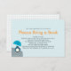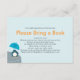 Customize this stylish modern Baby Shower Bring a Book 3,5" x 5" Request Insert Card. Designed with a cute penguin baby boy holding a blue umbrella with a heart. Quick and easy customization. Matching Baby Shower Invitation, Words of Advice Postcard Cards, Insert a Book Request Cards, Stamps, Thank You Note Cards and Stickers can be found here: