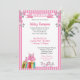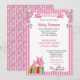 Cute Mom and baby owl graphics for a bring a book baby shower. The background has a pink stripe with accents of pink flowers. Mom to be will love this girly style baby shower invitation. Use our easy template to put your party details on this card. You can see how it will look before you order. Ordering is easy once you finish adding your information.
