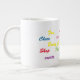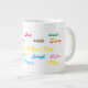 A lot of joyful and colourful words on this mug to help you bring you to your day or anyone else's day.