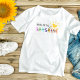 Here's a fun and colourful t-shirt that says: "Bring on the Sunshine" in colourful font, coupled with a heart-shaped sun.
