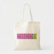 These bags were super cute (I purchased 3). The material is more of a canvas look & feel. The colour of the bag is slightly off white, but the letters look exactly as pictured. I took 3 photos in different lighting. Would recommend! I liked how there was an option to choose the font and colour of the name. The words are legible and the colours are exactly as pictured.