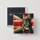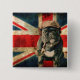 Whimsical and fun button with the British Flag and a Pug
