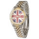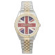 British Union Jack flag custom bracelet watch. Personalizable with your own custom text or name. Classy design with vintage UK flag.