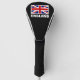 Patriotic British Union Jack flag custom driver Golf Head Cover . Personalized golfing gift ideas for him and her. Make one for best dad, father, papa, cool grandpa, step dad, uncle, retiring grandfather, granddad, retired golfer, business partner, friend, boss, groom, employee, coworker, partner, husband, coach, trainer, guests, mom, wife, sister, instructor, caddie etc. Add your own name, business name, quote, monogram or nickname. Also great for English golf club, academy, shop, lessons and schools. Black or custom color. Upload your own logo optionally. UK flag of United Kingdom England.