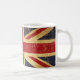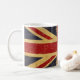 Coffee mug with the British flag in vintage distressed grunge old style design. This scratched design features The Union Jack flag in retro vintage style. This United Kingdom flag design is a great way to show you are proud to be British.