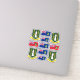Four Custom-cut vinyl stickers with the coat of arms of the British Virgin Islands and seven stickers with the British Virgin Islander flag in the centre