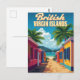 Step into a Caribbean dream with this stunning vintage-style travel design featuring the British Virgin Islands (BVI). The artwork captures a colorful alleyway flanked by charming island architecture and lush palm trees, opening up to a bright blue sea with a sailboat on the horizon. Perfect for travelers, beach lovers, sailing enthusiasts, and anyone looking for tropical vacation vibes. This retro illustration is an ideal souvenir, gift, or decorative piece for those who appreciate old-school tourism art.