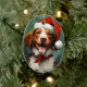 Brittany dog Christmas brush painting artwork Ceramic Ornament