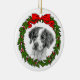 Graphite drawing of a Brittany Spaniel on a Christmas ornament by Glenda S. Harlan.