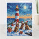 Brittany Spaniel Christmas Lighthouse Holiday Card