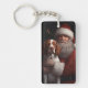 Brittany Spaniel With Santa Claus Christmas Keychain