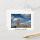 Postcard of the clouds over Broadway Tower, a folly on a hill near the town Broadway in the Cotswolds, UK with a white border and the text: 'Cotswolds'.