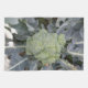 This awesome kitchen towel features a detailed photograph of a head of broccoli growing in a garden. The tightly bunched green florets are surrounded by the large outer leaves of the vegetable.