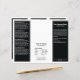 Menu Prix du service minimaliste Black Tri-Fold ou Triefold Menu Brochure promotionnelle avec double bordure blanche. Ce produit présente un design classique simple et professionnel à double bordure avec une ligne fine et une ligne épaisse. Il y a beaucoup de place pour customiser ce produit pour vos besoins professionnels. Il y a 16 sections que vous pouvez customiser avec votre menu service, liste de prix ou brochure d'information. Ce design épuré et épuré est disponible en plusieurs couleurs et est parfait pour toute profession. Visitez notre magasin pour obtenir des fournitures de bureau de petite entreprise plus essentielles et des produits assortis! : D _________________________________________________________ NOM DE LA CONCEPTION : Bordures professionnelles simples I ~ COULEURS DE CONCEPTION : Noir et blanc. ~ =============================================================================================================================================================================================================================================================== Toutes les oeuvres sont originales et ont été créées par l'artiste de Mydeas. Copyright © 2007-Present Mydeas/Mydeas Designs. Tous droits réservés.