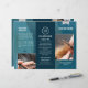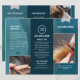 A modern and stylish blue trifold brochure for Hair Salons and Barbershops. An elegant salon service brochure choice design to market your services and taget audience market to generate sales. It is a fully customizable design, and you can edit the text to share your business details.