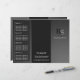 Brochure avec un arrière - plan noir gris clair. Initiales du nom commercial pour former un logo simple comme le design. Cette brochure professionnelle, élégante, moderne et simple est idéale pour les comptables, les agents immobiliers, les agences immobilières et les entreprises de conseil et de conseil.