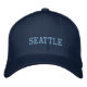 Casquette montré en bleu marine avec texte brodé bleu : Seattle Personnaliser cet article ou acheter tel quel.