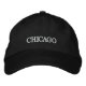 Un casquette brodé classe avec le texte Chicago.