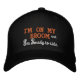 Affiché en noir avec un texte brodé à deux tons dans les couleurs orange et blanche. Front a le texte de "Je suis sur mon balai et je suis prêt à monter". Customisez ce casquette de baseball à vos choix de couleur ou achetez tel que conçu.