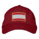 Le drapeau de l'Autriche brodé sur un casquette. Des rayures rouges et blanches forment le drapeau, et la bordure est faite en fil doré. Choisissez parmi trois styles casquettes et des dizaines de couleurs, hommes ou femmes.