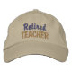 Les mots éditables, Enseignant retraité, brodés dans les couleurs amusantes automne sur un casquette de baseball kaki. Entièrement personnalisable, y compris les couleurs de police, la taille et le style. Autres couleurs et styles casquettes disponibles. À partir de Appelé. https://www.zazzle.com/Called*