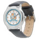Brody boys name meaning heraldry knights kids wrist watch. Knights style shield monogram letter B art name simple numbered clock face perfect for in shades of orange, blue white and grey. Personalize with your own name and name meaning for a great unique personalized gift, this example is for names with the letter B and currently reads Brody Spirited king of muddy rampart. Other matching items available. Unique shield drawing, graphic art, name research, wording and design by Sarah Trett. www.sarahtrett.com for www.mylittleeden.com