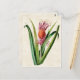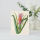 Postcard with a digitally cleaned and enhanced vintage image of a bromeliad plant with a pink flower on a parchment background. Illustrated by Etienne Denisse for Flore d'Amerique, published in Paris, 1843.