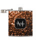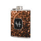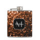 Bronze brown copper faux glitters sparkle Monogram Hip Flask